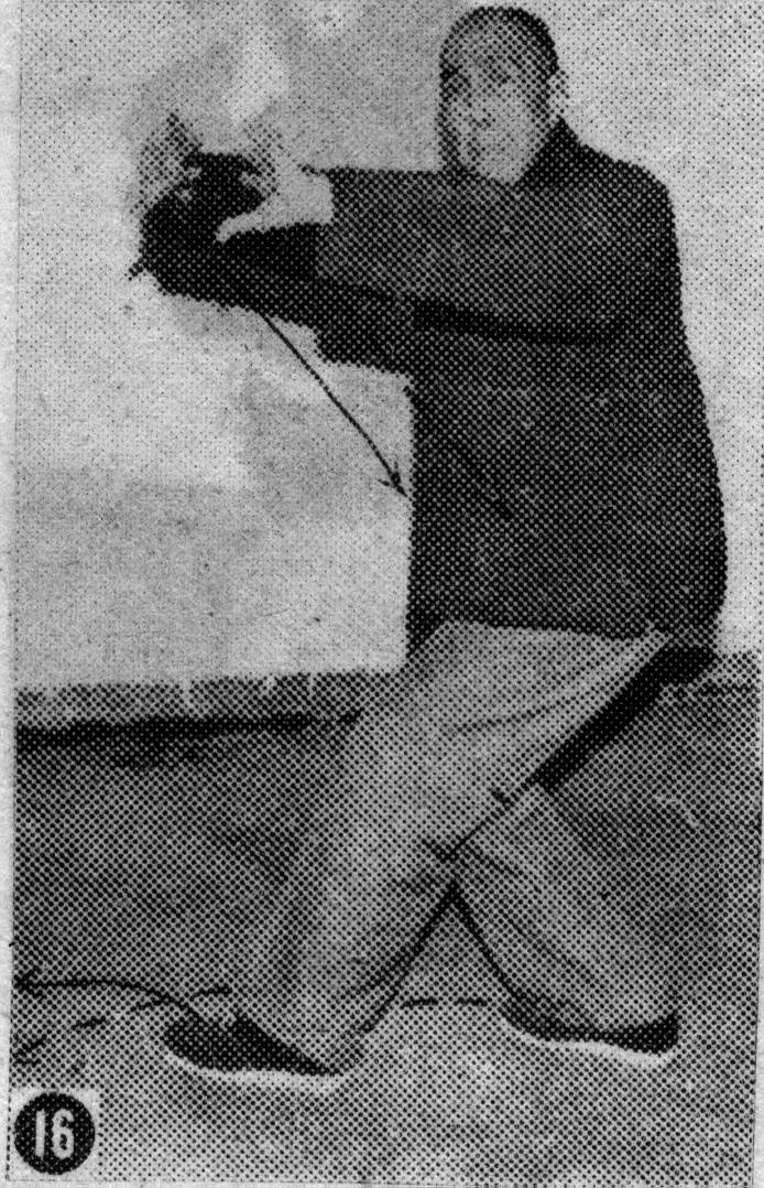 (picture 17) Slightly stop. Then the left foot steps forward and